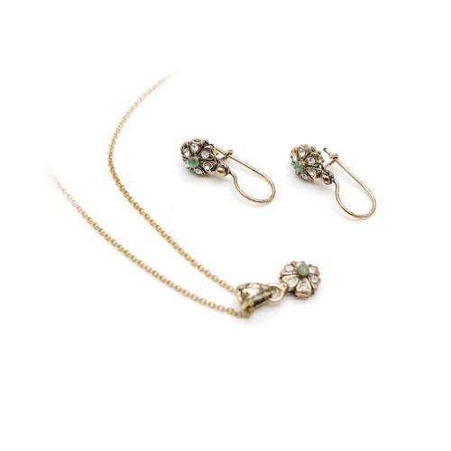 - Ortası açık yeşil, etrafı beyaz taşlı pirinç kolye ve küpe settir.