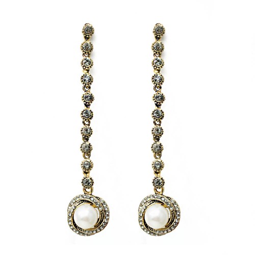İncili Uzun Pirinç Küpe