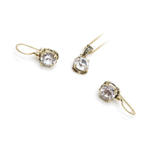 - İri dikdörtgen beyaz taşlı pirinç kolye ve küpe settir.