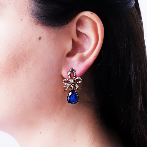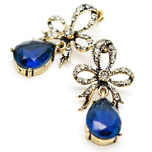 • Montana renk kristal cam taşlı pirinç küpedir.