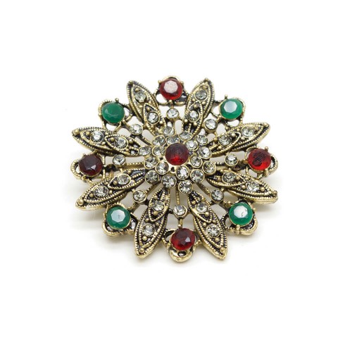 - Antresit, bordo ve yeşil renk kristal cam taşlı pirinç broştur.