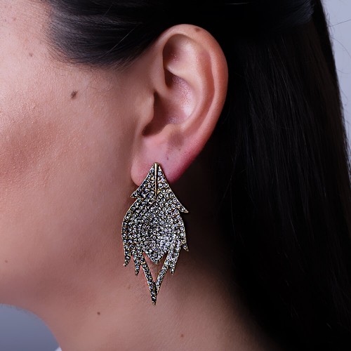 - Antrasit kristal cam taşlı pirinç küpedir.
