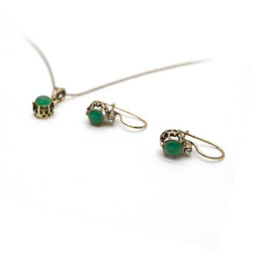 - Yeşil taşlı pirinç kolye ve küpe settir.