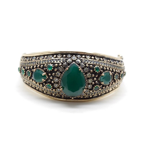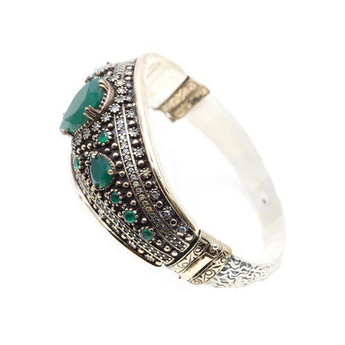 Zümrüt Taşlı Kelepçeli Gümüş Tasarım Bileklik