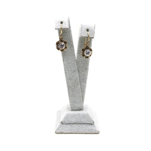 - Beyaz renk kristal cam taşlı pirinç küpedir.