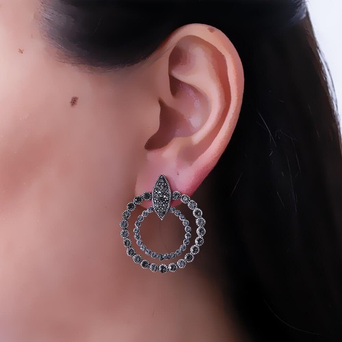 Antrasit Çift Halka Küpe