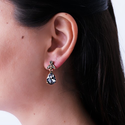 - Antrasit renkli kristal cam taşlı pirinç küpedir.