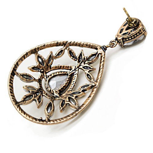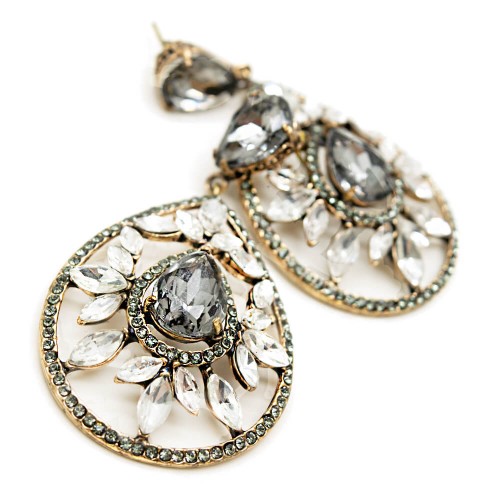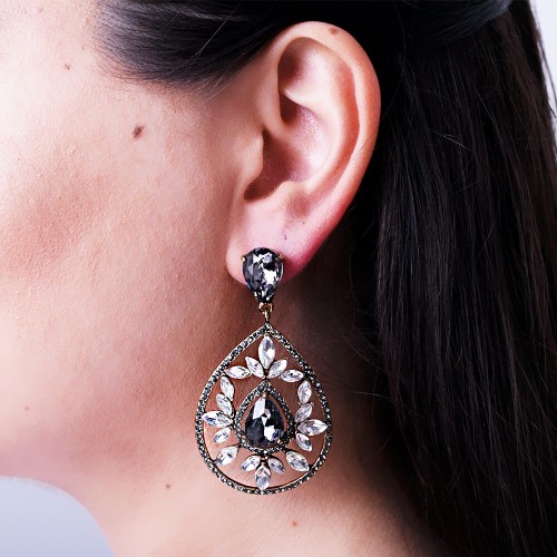 - Antrasit renkli kristal cam taşlı pirinç küpedir.