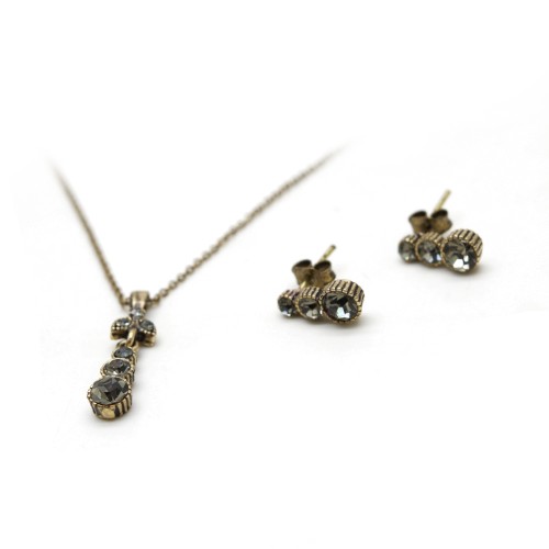 Antrasit Üç Taşlı Kolye Küpe Pirinç Set