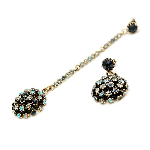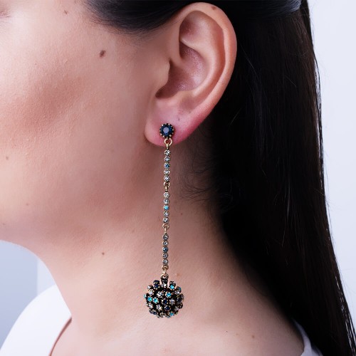 - Montana antrasit ve mavi renkli kristal cam taşlı pirinç küpedir.