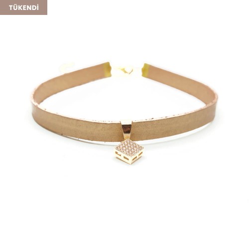 - Bal rengi deri zirkon uçlu tasma choker kolyedir.
