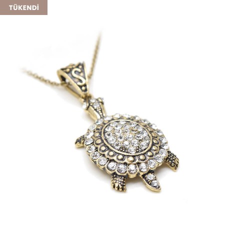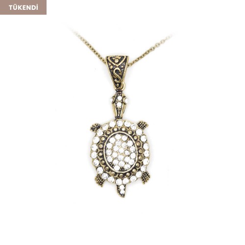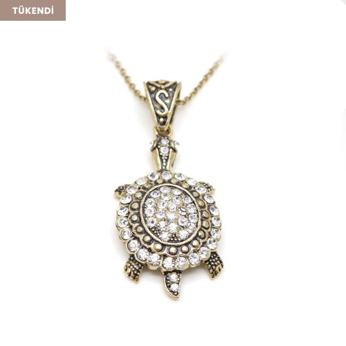 - Kaplumbağa desenli kristal cam taşlı pirinç kolyedir.