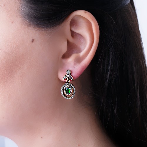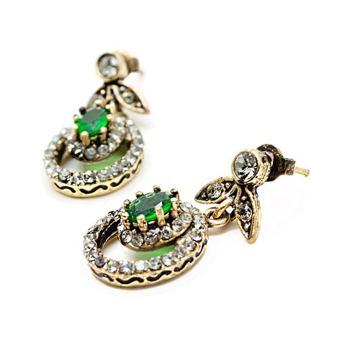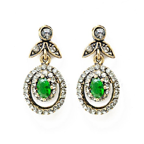 - Zümrüt renkli kristal cam taşlı pirinç küpedir.