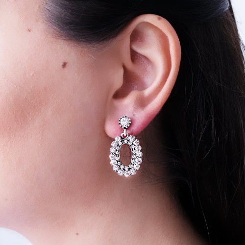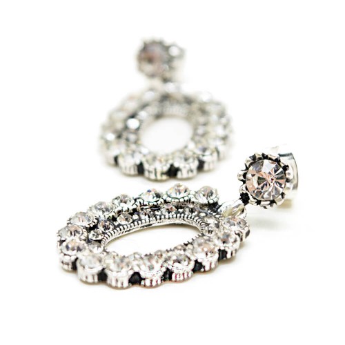 - Beyaz renkli kristal cam taşlı pirinç küpedir.