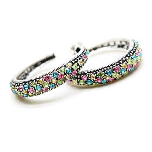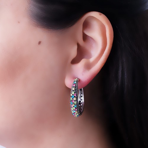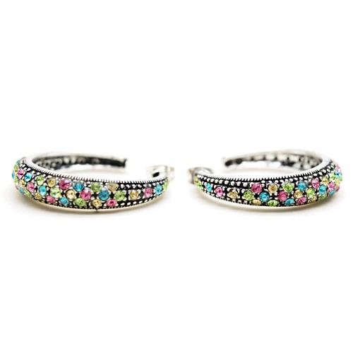 - Rengarenk kristal cam taşlı pirinç küpedir.