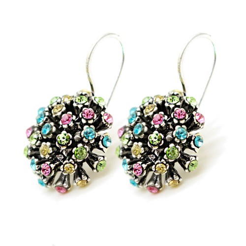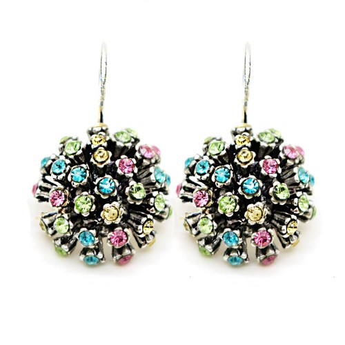- Rengarenk kristal cam taşlı pirinç küpedir.
