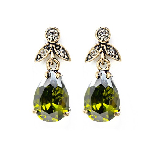 - Haki renkli kristal cam taşlı pirinç küpedir.