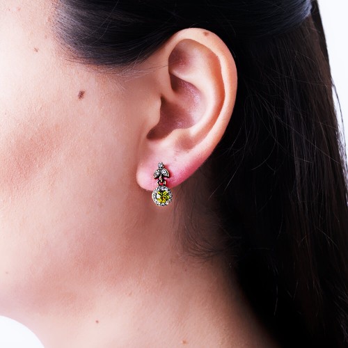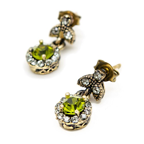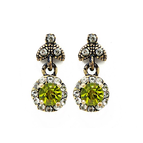 - Haki renkli kristal cam taşlı pirinç küpedir.