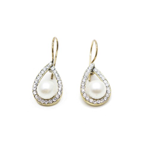 - İncili, beyaz renk kristal cam taşlı pirinç küpedir.