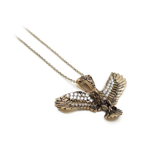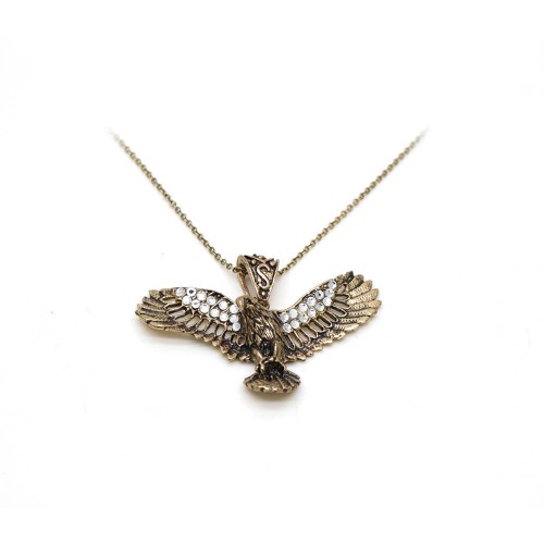 - Kartal desenli, beyaz renk kristal cam taşlı pirinç kolyedir.
