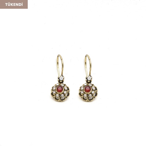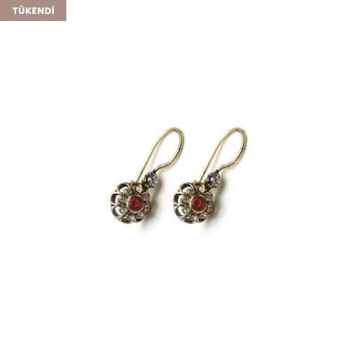 - Kırmızı ve beyaz renkli kristal cam taşlı pirinç küpedir.