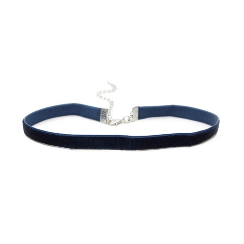 - Koyu lacivert renkli kadife tasma kolyedir.