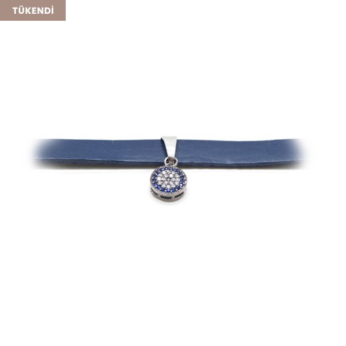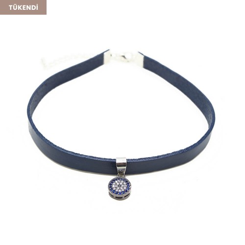 - Lacivert deri zirkon uçlu tasma choker kolyedir.