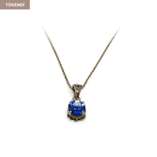- Mavi renkli kristal cam taşlı pirinç kolyedir.