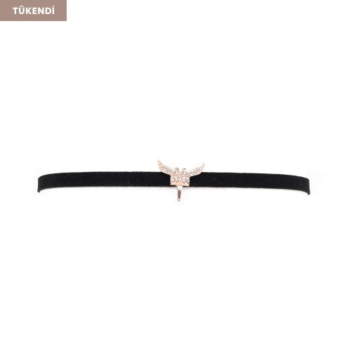 - 1 cm'lik siyah süet üzerinde birinci kalite zirkon işlemeli mikailin kılıcı uçlu tasma choker kolyedir.