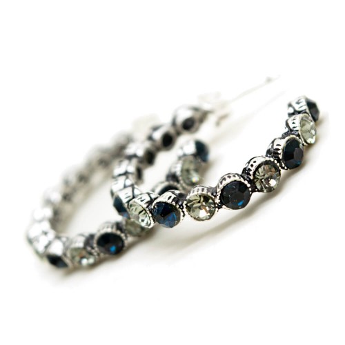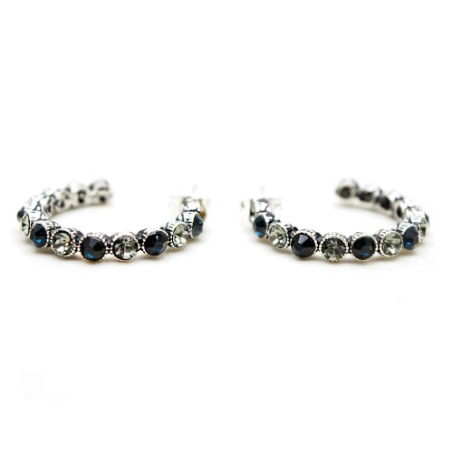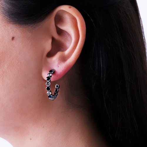 - Montana ve antrasit renkli kristal cam taşlı pirinç küpedir.