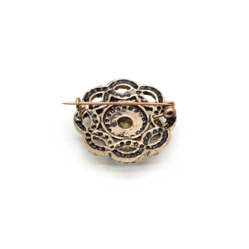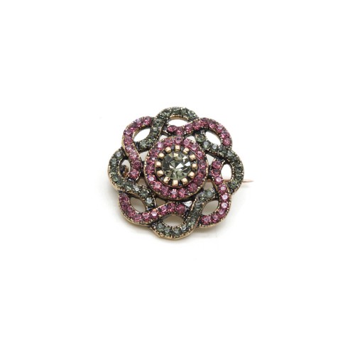 • Antresit ve mürdüm renkli kristal cam taşlı pirinç broştur.