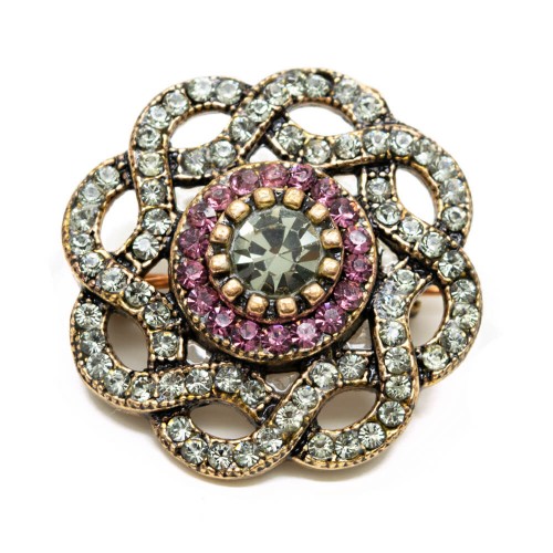 - Antresit ve mürdüm renkli kristal cam taşlı pirinç broştur.