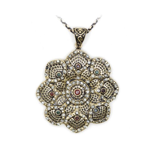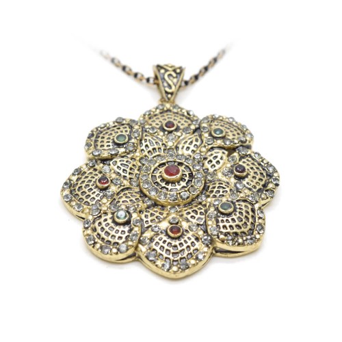 Otantik Tarz Kabartmalı Desen Pirinç Kolye