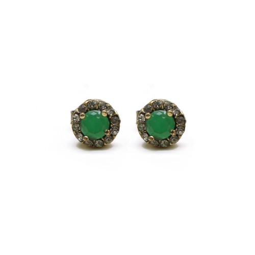 - Yeşil ve duman renkli kristal cam taşlı pirinç küpedir.