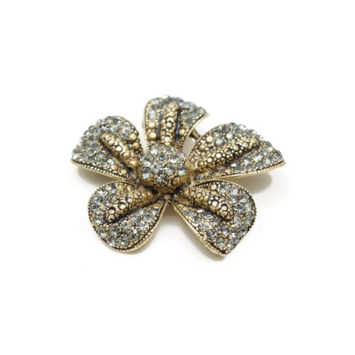 - Antrasit renkli kristal cam taşlı pirinç broştur.