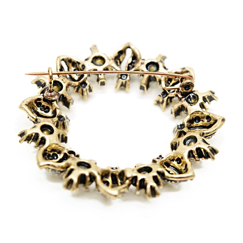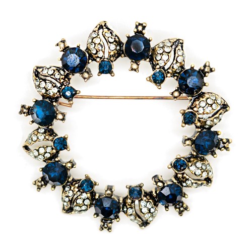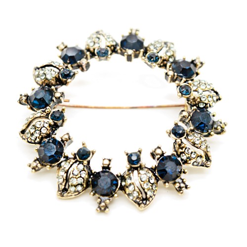 - Montana ve antrasit renkli kristal cam taşlı pirinç broştur.