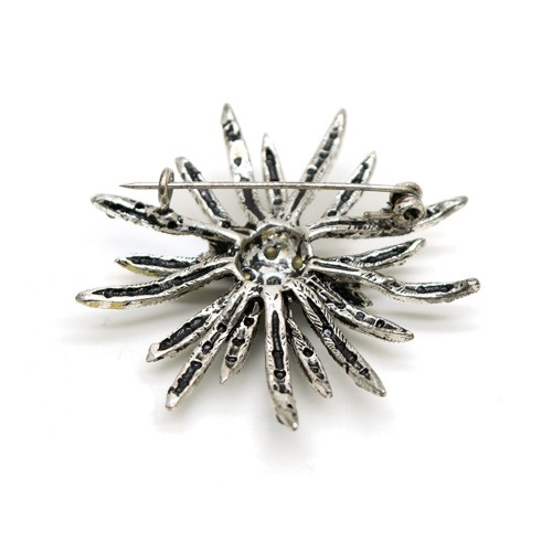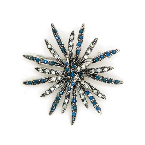 - Kristal ve montana renk cam taşlı pirinç üzeri 925 ayar gümüş kaplama broştur.