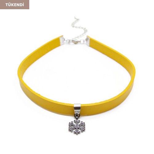 - Sarı deri zirkon uçlu tasma choker kolyedir.
