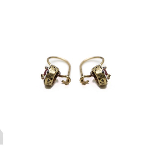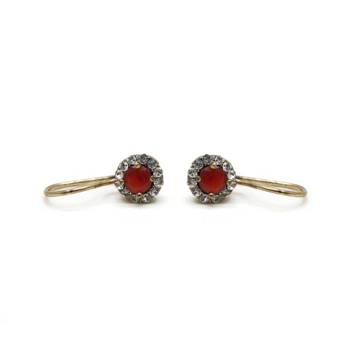 - Kırmızı ve beyaz renkli kristal cam taşlı pirinç küpedir.