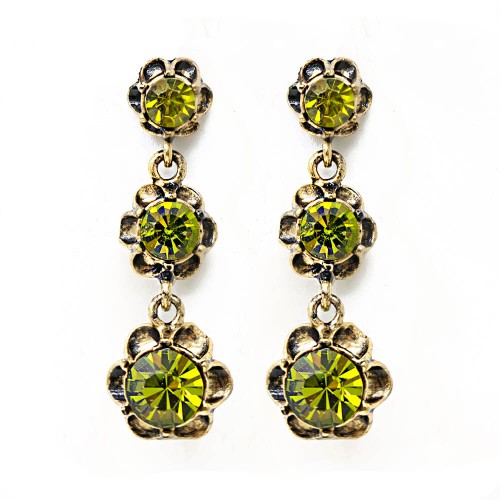 Üç Çiçek Haki Pirinç Küpe