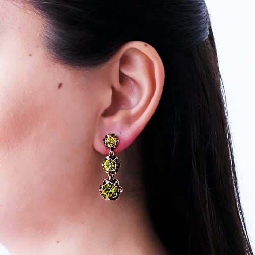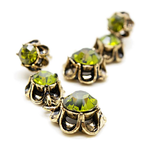- Haki renkli kristal cam taşlı pirinç küpedir.