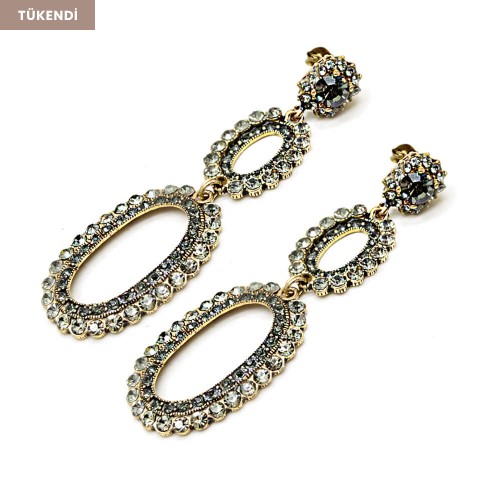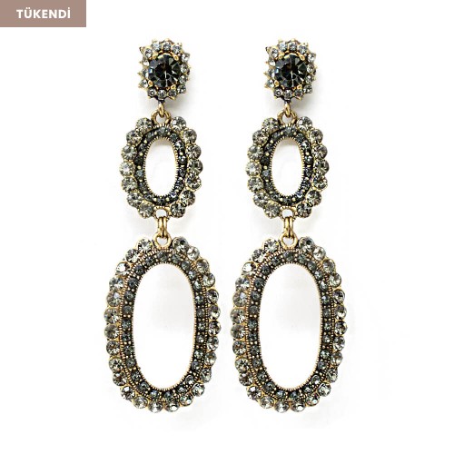- Antrasit kristal cam taşlı pirinç küpedir.