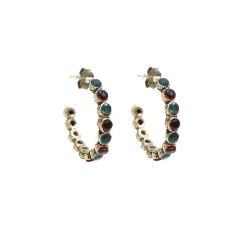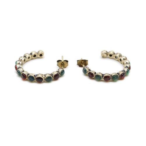 - Yeşil ve kırmızlı renkli kristal cam taşlı pirinç küpedir.