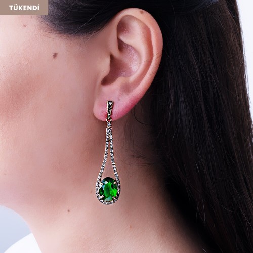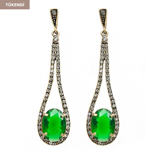 Zümrüt Taşlı Uzun Damla Pirinç Küpe