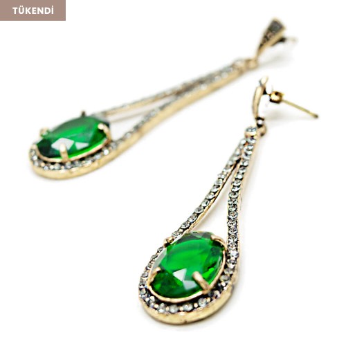 - Zümrüt renkli kristal cam taşlı pirinç küpedir.